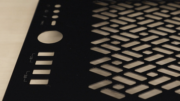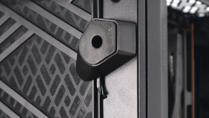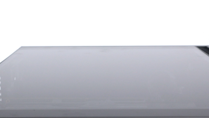 Dark Tempered Glass 燻黑的玻璃面板,隱約可以看到裡面的零件。整片強化玻璃都沒有螺絲,視覺更加連貫平滑。