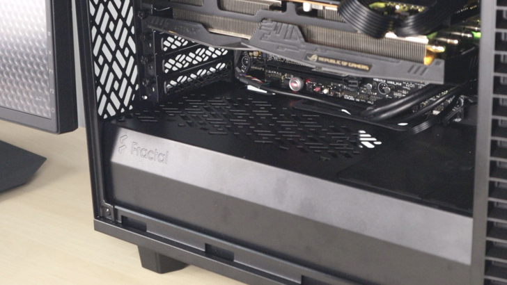 Define 7 Compact 的顯示卡空間可以支援到 360mm,所以即便是這次安裝了 ASUS ROG STRIX RX5700XT O8G GAMING 這樣中高階的顯卡,長達 305mm,空間上也不會卡手。