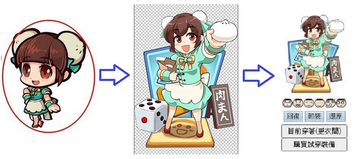 另外,利用遊戲裡的SKIN來設計巴哈的勇者造型,同樣也是孫小美的角色,構想是女僕包子裝,再加上大富翁的配件巧思,新版的勇造就這麼繪出,而且還順利地成功上架,實在是太佩服了~
