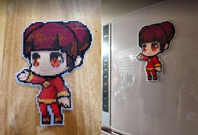 接著是孫小美登場,印象中拚豆玩起來很費時,不過有強者製作了玩偶大小的拚豆作品,顏色和比例都拿捏的恰恰好,加上磁鐵就可以直接黏在冰箱上面,是不是很可愛啊~