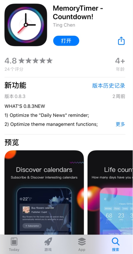 ▲iOS版本的MemoryTimer支持V0.8.0以上的版本,可以等到價格促銷再安裝,他們會不定時進行促銷。