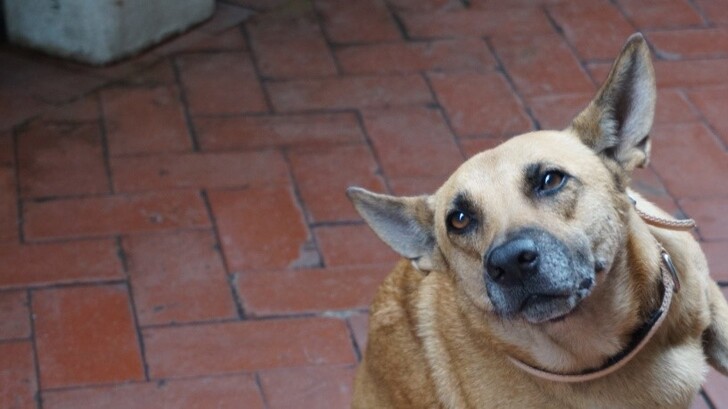 旁邊還有隻表情看起來有點憂鬱的小狗,牠那憂鬱的表情看著像是因為我們都只找黑貓玩而露出的委屈模樣,其實牠也十分令人憐愛呢!