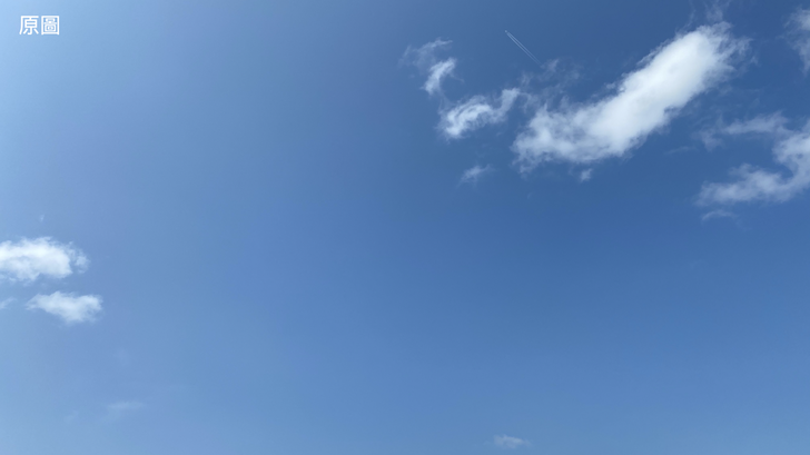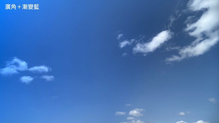 iPhone 11 Pro 加上廣角和漸變藍拍攝天空,看到的雲朵也多了些,天空更加湛藍。
