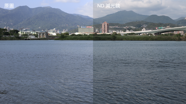 這組是減光鏡的比較,不過左邊的雲不多,看起來可能沒那麼明顯。不過在電腦上可以明顯看出,用了減光鏡的版本,雲朵的層次更加明顯,不會因為自然光太亮,而白成一片缺少立體感。