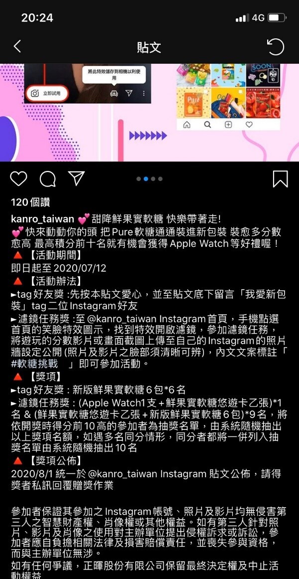 濾鏡任務獎:至@kanro_taiwan Instagram首頁,手機點選