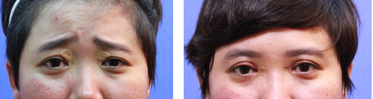 黃色素瘤案例一位女士是一個經皮膚雷射治療失敗個案,因刺激而越變越大,別人戲稱他開天眼了!找了其他醫師說沒辦法了,在整形外科林仲樞醫師建議下,做黃色素瘤手術處理。由於局部很緊,還加上一些肉毒桿菌注射及類固醇預防性的注射,以降低局部的張力及疤痕增生,雖然無法完全切除,但也讓患者敢拿掉眼鏡重見天日,而且很特別的是,本來這個個案有很奇怪的提眉動作,這個內側提眉的動作造成他有很奇怪的八字眉型,林仲樞醫師在手術後合併的肉毒桿菌注射,讓他在接近一年的追蹤,都不再看到這種奇怪的眉型,這也是這個黃色素瘤手術後一個相當滿意的附屬效益。