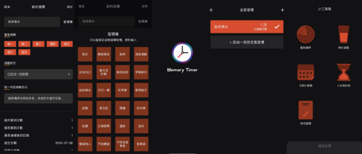 除此之外,小時光Memory還有幾個關於每日習慣的建議: