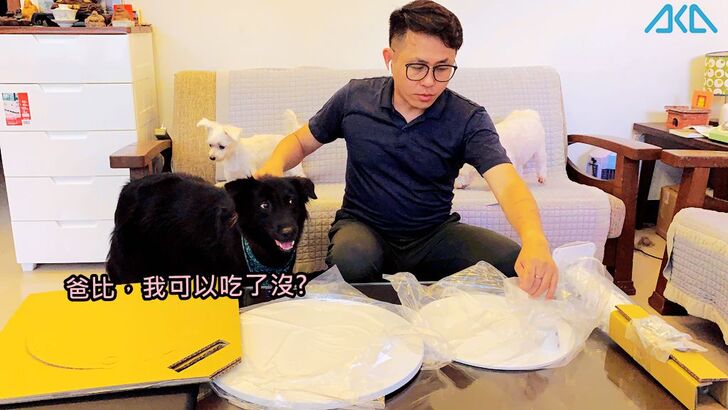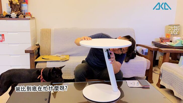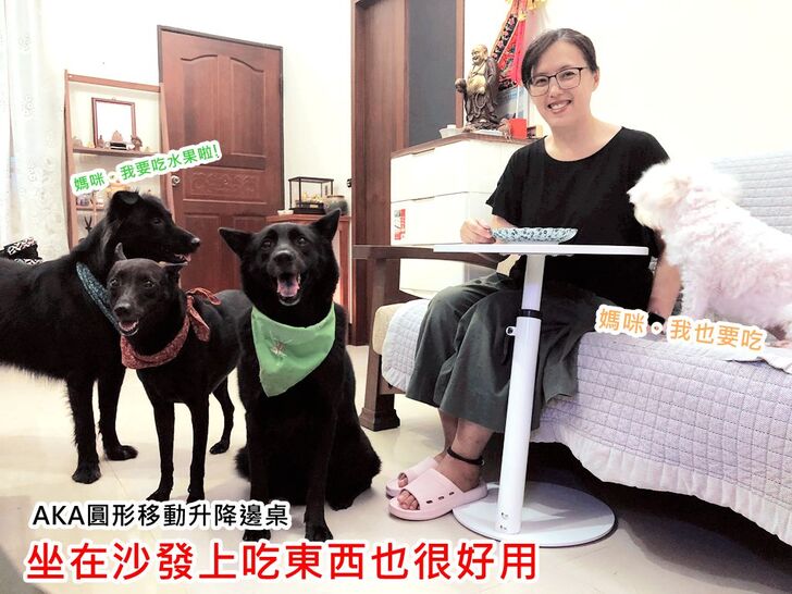 毛小孩們看到我終於裝好桌子,開心地跳上椅子,要跟我一起來體驗這張「AKA圓形移動式升降邊桌」。