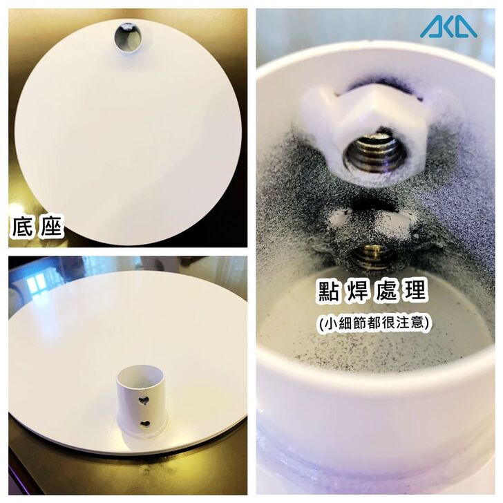 底座的螺絲孔位部分,又再用點焊來做加強及固定,連小細節都非常注意耶!(給一個讚)
