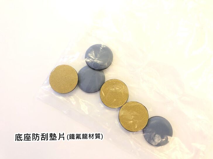 這個是底座的防刮墊片是鐵氟龍材質,就是耐磨啦!這墊片是讓使用者可以貼在底座下面,如果您家裡是木地板,就不用擔心刮壞地板啦!