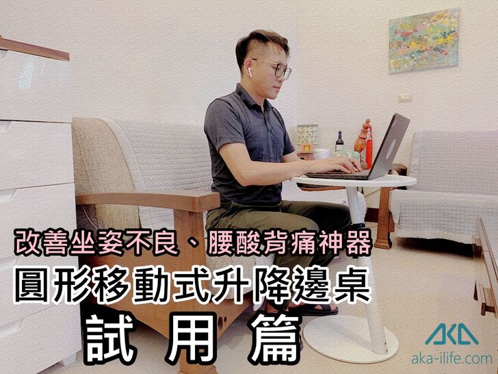 最近使用「AKA圓形移動式升降邊桌」的心得,就是不用再彎腰駝背坐在客廳的矮茶几上打字。