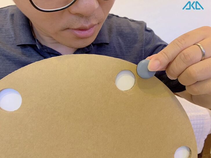 要提醒大家,包裝盒裡面有附上一個圓形紙板,這個不要丟掉喔!因為,這個也是十分貼心的小設計,讓您用紙板來對準防刮墊的孔位,貼起來就是整齊漂亮。