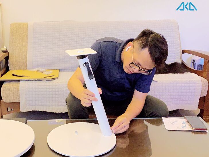 實際使用「AKA圓形移動式升降邊桌」,第一個感受就是,我不用再彎腰駝背,委曲求全的蹲在客廳的茶几上打字。反而,可以很舒適地坐在沙發上,用比較健康的姿勢來使用電腦。
