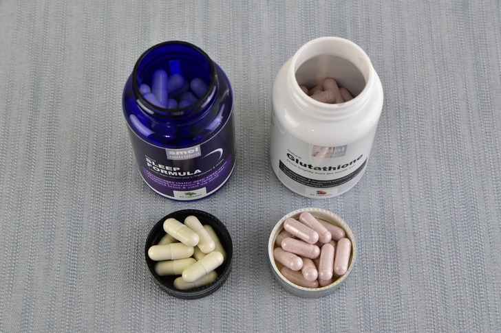 左邊是舒壓助眠草本複方膠囊,右邊是澄淨亮妍複方膠囊。看包裝其實應該也猜得出來~