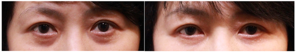 其次是黑眼圈及色素沉著,黑眼圈要了解是內因型或外在型,內因型是由突出的眼袋或連同下方的淚溝所造成的陰影,處理方法就需要將眼袋移除或填平淚溝。有時在開眼袋手術時,可以用脂肪轉位的方法,將眼袋的脂肪向下移,就可以同時將兩個問題同時解決。這種方法可以於內開或外開下進行,只是內開的自然度遠勝外開,而且併發症少很多。我們建議除非皮膚多很多的患者,否則內開的滿意度和恢復其都勝過外開法!對於皮膚只略多且選擇內開的患者,明錦林仲樞醫師會配合一些磨皮或二氧化碳雷射,同時刺激皮膚收縮與代謝,對外因型的黑眼圈也會改善。