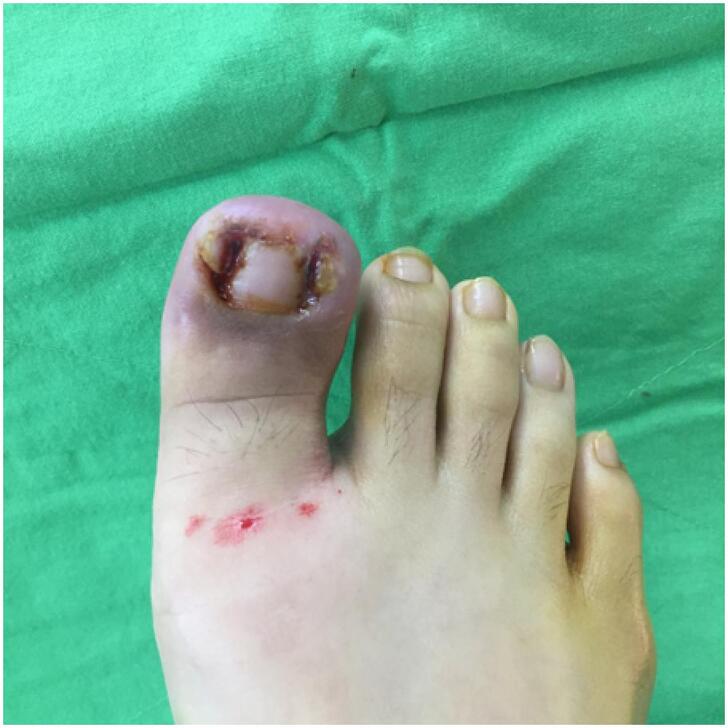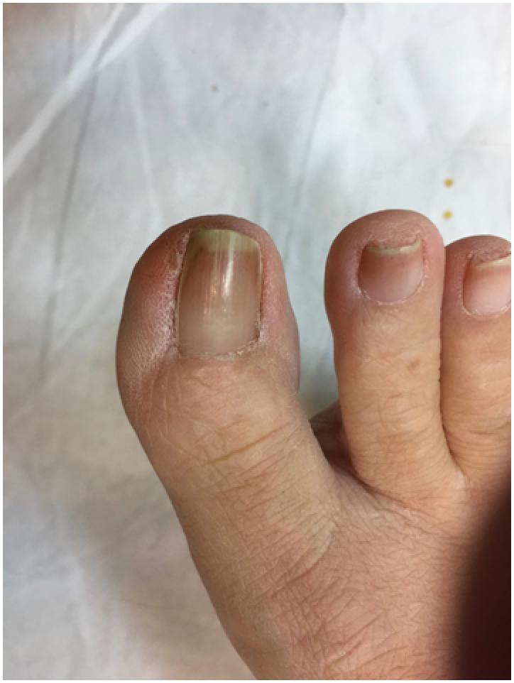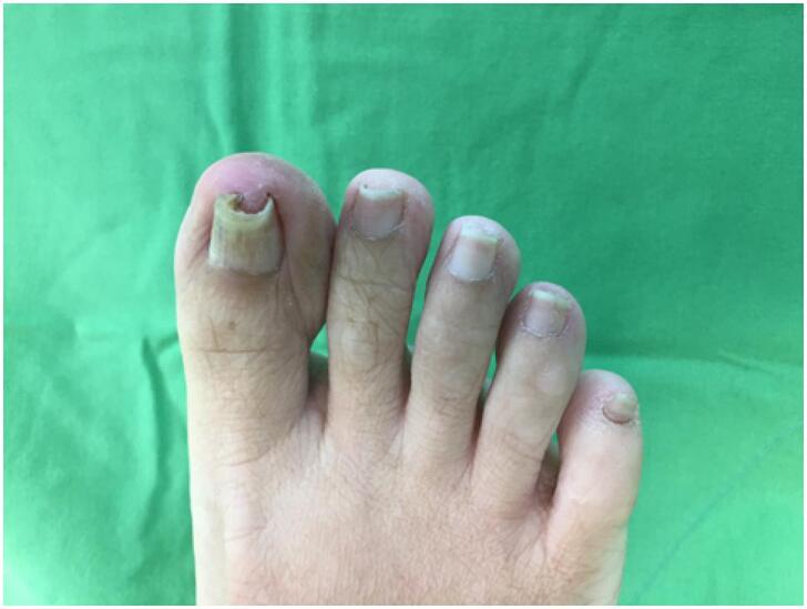 (個案三)手術前腳趾甲溝炎腫脹的情形