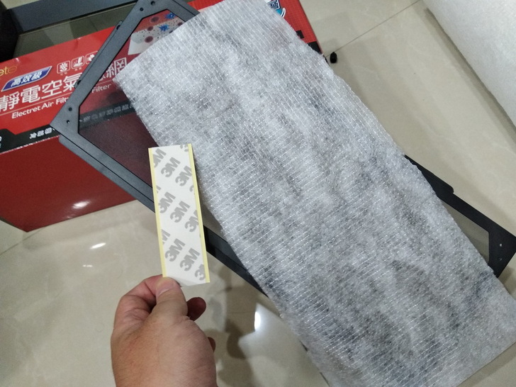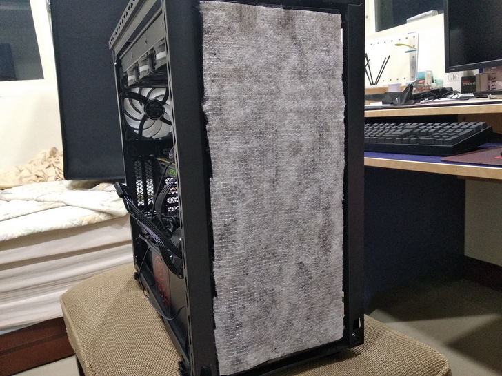 前置防塵濾網被小弟加上好市多買的3M靜電空氣濾網,雖然很醜,不過當作是0.5台空氣濾淨器加上超級防塵就這樣啦 XD