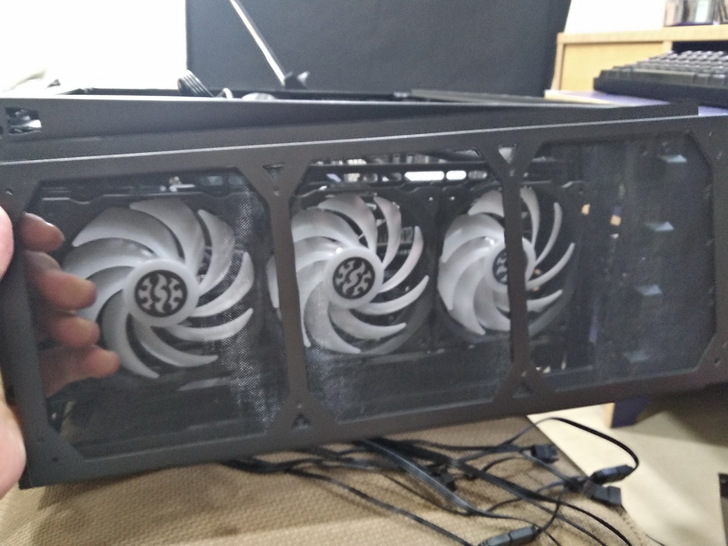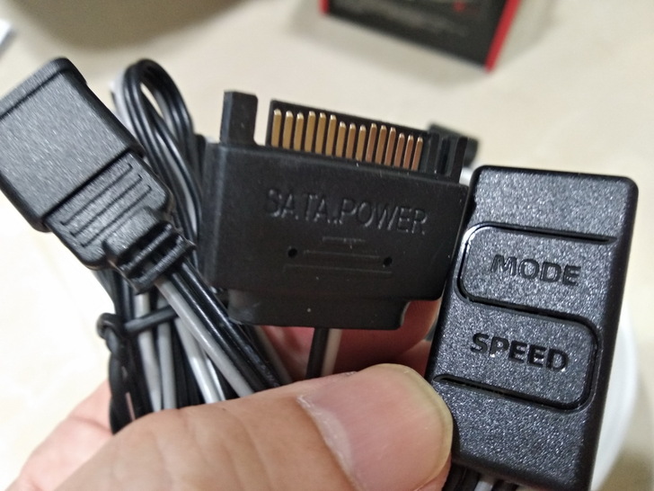 好像看過有人開箱分享這東西,接SATA電源加ARGB接頭上去可控制燈光,但它自己也有一個控制盒有兩個按鈕可選模式和速度