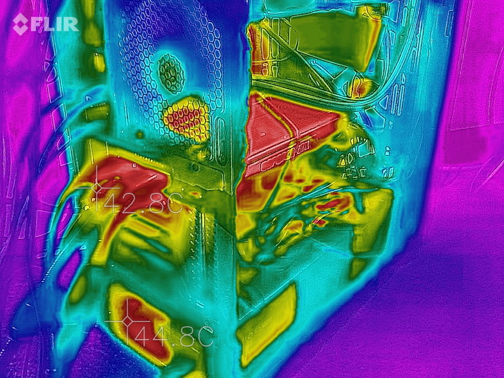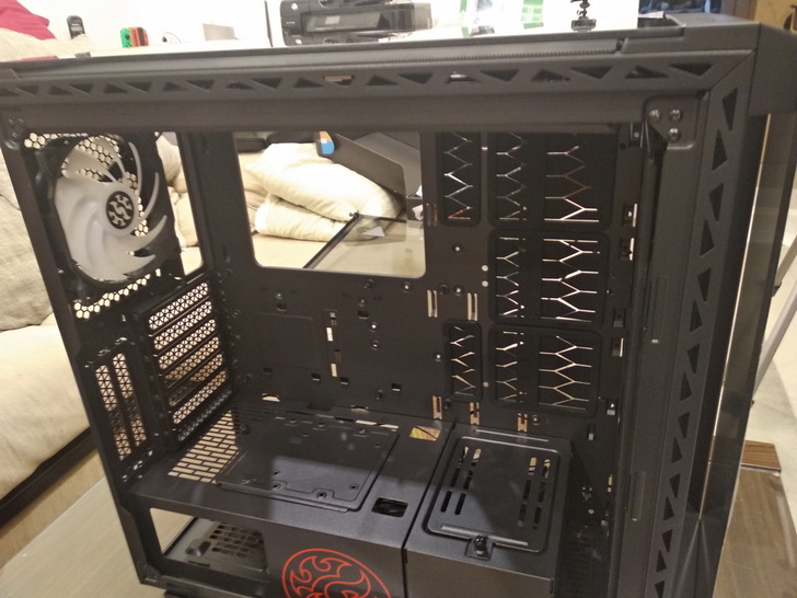 看一下內部,可以發現不管外觀的鏤空設計或是內部的孔洞配置,應該都讓整台主機有著良好的進氣散熱功能