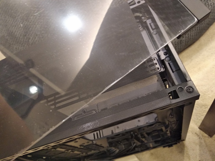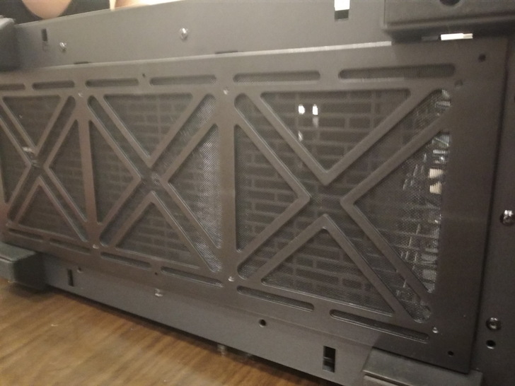 上置也是強化玻璃設計,且和前方面板一樣是中空設計進氣足,加上只要兩顆螺絲就可以拆開這塊上蓋,還有一張磁吸濾網可阻擋灰塵,設計的不錯!