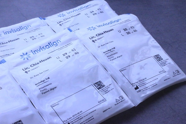 看診完醫師會給患者一大包像這樣的包裝,這就是隱適美牙套,這個隱形牙套很可愛!為甚麼二姊姊要這樣說,給大家看看不同角度~