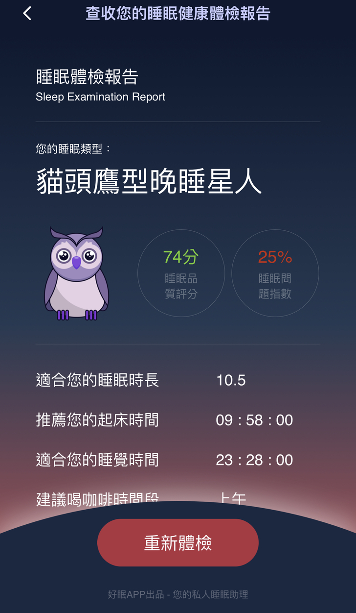 因此,從睡眠時間上來看,可以根據你的起床時間和90分鐘時長的睡眠週期,倒推你應該在何時入睡,將時間控制在完整週期內,也可在好眠APP中的生成自己專屬睡報告,給你最專業的建議。