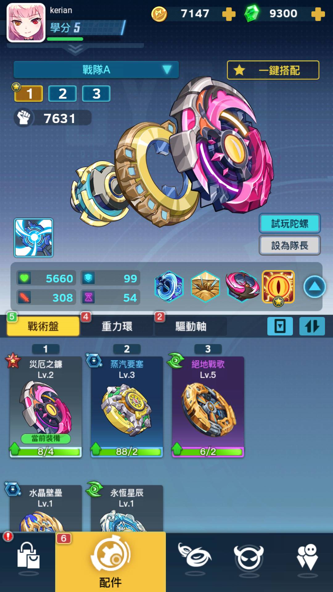 組裝陀螺的部份,讓玩家除了可以更有策略的思考搭配組合外,也能打造出自我風格的陀螺,而且部位還有各種不的SKIN外觀,更換時會追加特效,讓玩家的陀螺更有特色。玩家如果組裝苦手,也可以直接考量推薦組合的部位,這會把一些特性更佳明顯化,讓玩家更好上手。此外,陀螺也可以進行培育,還能放入晶片強化特定能力,而且戰術盤的部份還被角色形象化,讓玩家培育起來更有動力。