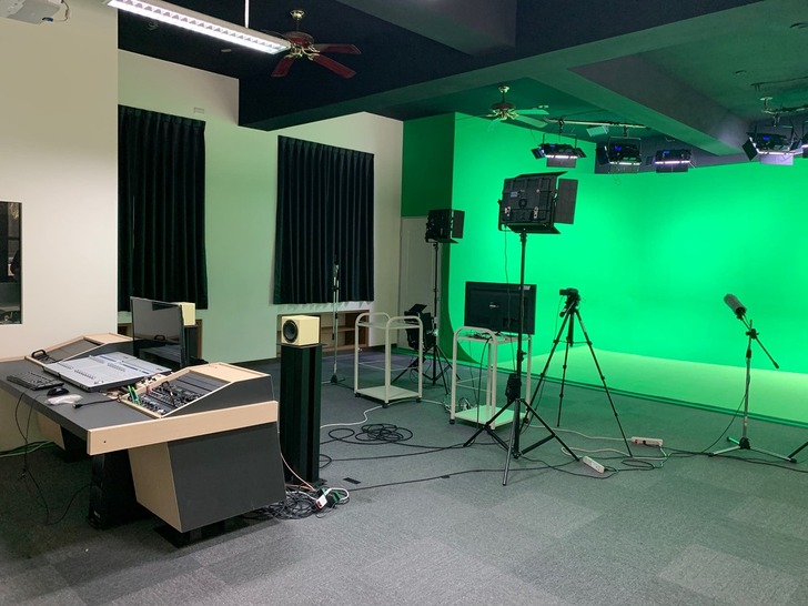 而且還非常專業,有音控台、綠幕攝影棚等等
