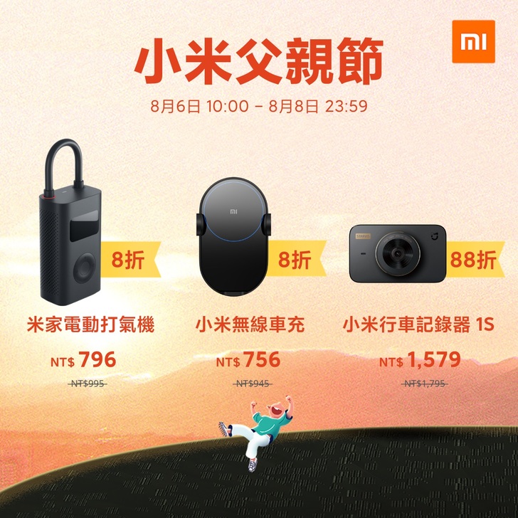 「小米父親節」於8月6日10時起開跑,祭出眾多適合爸爸們的商品優惠8折起,包含爸爸上班通勤時的實用小物,如小米藍牙耳機Air 2、小米無線車充等享8折優惠,以及爸爸們常用的生活用品,如米家行車紀錄器 1S、米家電動刮鬍刀 S500或小米盒子 S等享88折優惠。此外,更推出多款超值組合,米家電動刮鬍刀 S500與專屬刀頭一組只要新台幣$1,000元(現省$190元),使用現金券再折$100元;米家便攜電動刮鬍刀 1S(往復雙刀頭)與專屬刀頭一組只要新台幣$1,100元(現省$140元),使用現金券再折$100元;米家聲波電動牙刷 T500與專用牙刷頭(通用型或敏感型二擇一)一組只要新台幣$1,100元(現省$240元),使用現金券再折$100元;更祭出最大優惠購買小米AI音箱即贈小米手環 4(現省$745元),使用現金券再折$100元。專為父親節推出的滿額加價購,單筆消費不含手機滿$2,000元即可加價$500元購買米家電動刮鬍刀S500;購買小米手環 5加$300元即可加購小米藍牙耳機Airdots超值版,更多組合套裝活動、現金優惠券、積分活動等,讓小米幫你感謝爸爸之際也不傷荷包!更多「小米父親節」活動內容,請參考小米商城mi.com。
