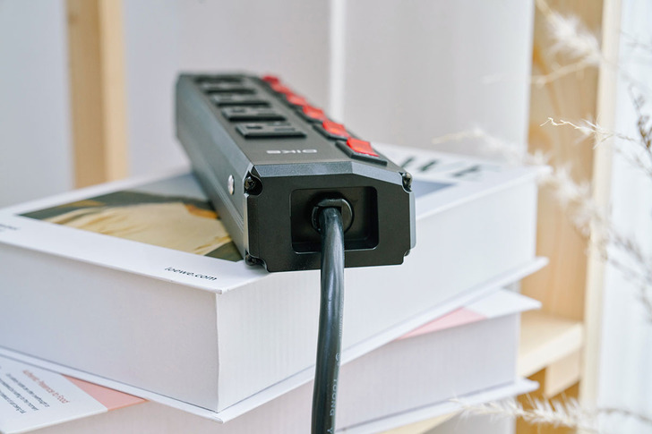 ▲每個插座都有一對一獨立開關,好處就是能避免待機浪費也不用重覆插拔插頭,可以發現延長線最前端還配置了一組總開關,完全不使用時只要一鍵就能關閉所有插座的電源。