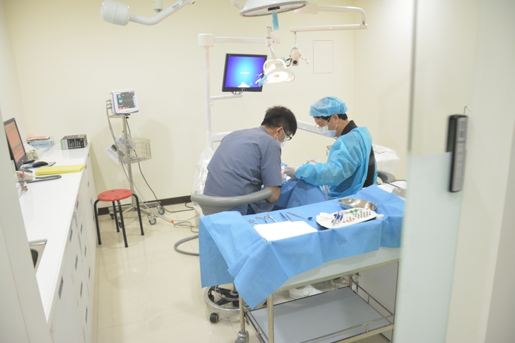 到了看診台 林醫師與護士已經為我爸缺牙治療做好準備