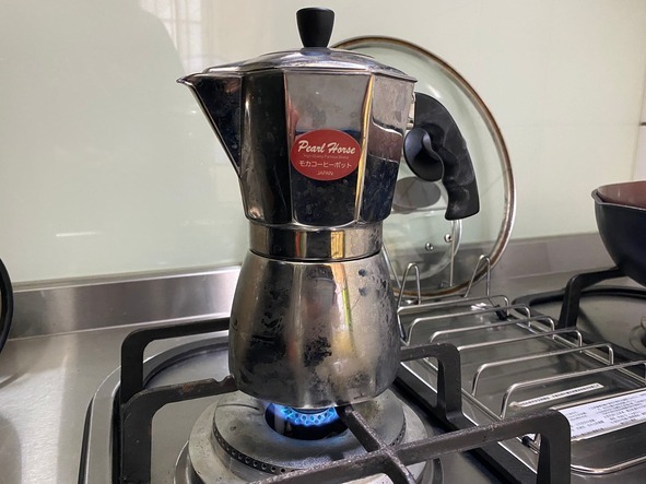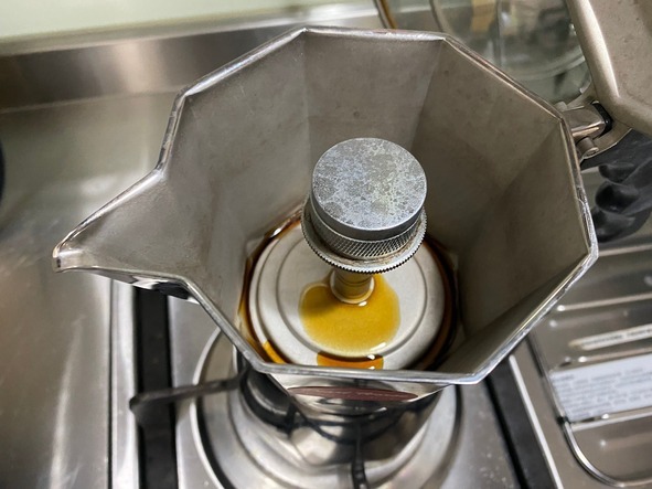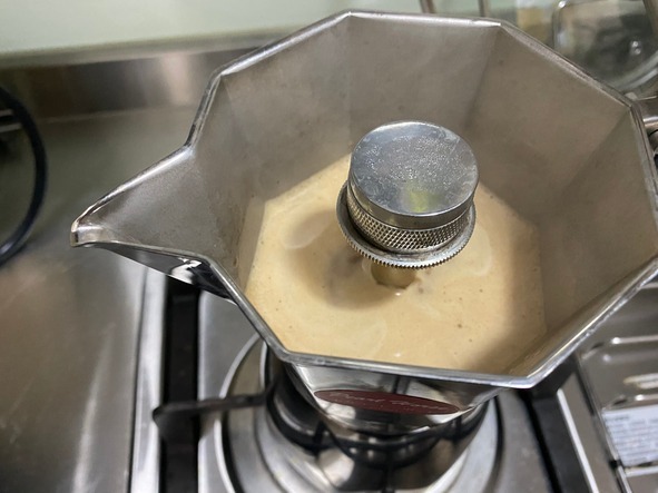 過幾秒後等到冒出一堆咖啡後就可以把火關掉