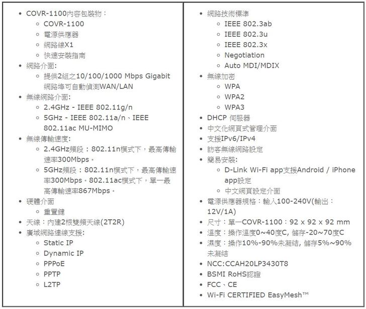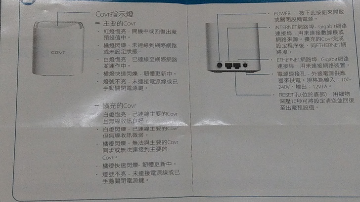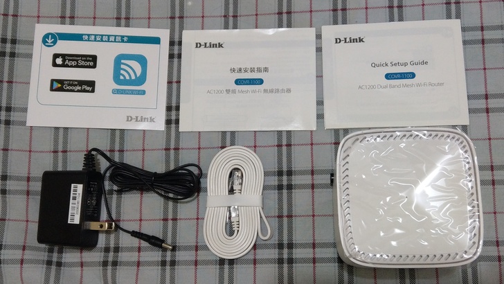 包裝內部的內容物就是有三份安裝使用說明書,以及一台D-Link COVR-2202主機、一條電源線和一條網路線,配備簡單,但是夠用就好!