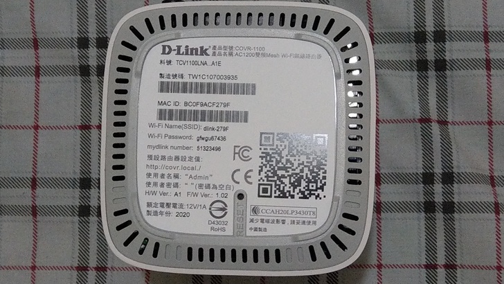 D-Link COVR-2202主機底下有貼著一張標籤,上面註記著這台機器的產品製造資訊,和WiFi Router的網路連線資訊,以及一個Reset插孔(這個還蠻特別的,大概是怕有的人會手癢,不小心去按到吧^^)!
