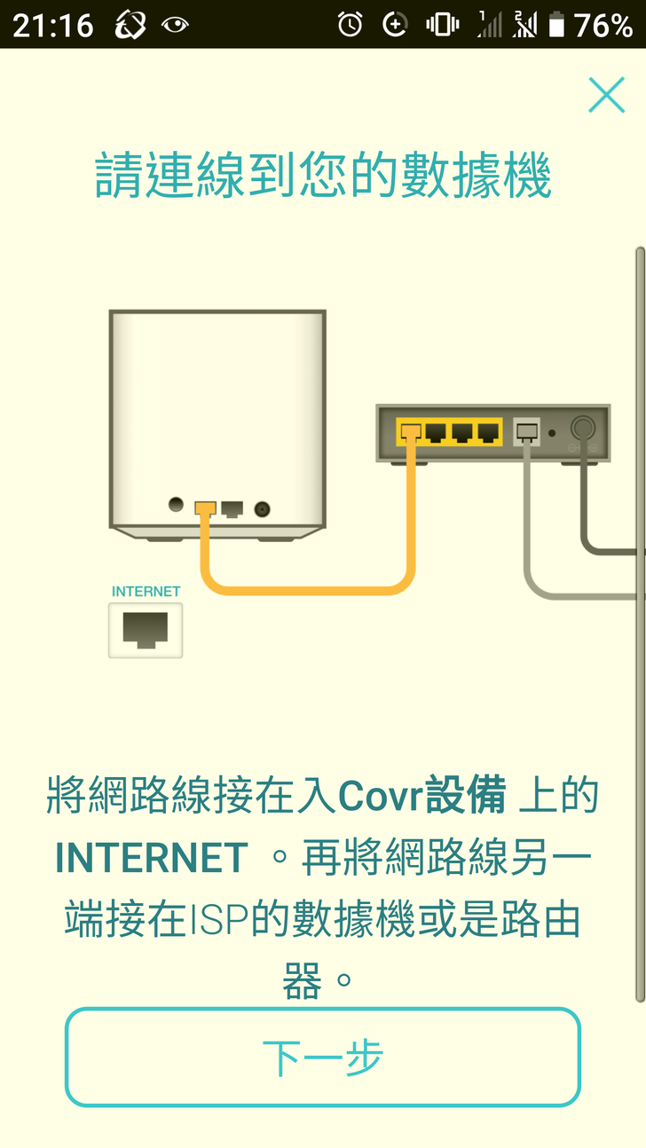 這次我是通過下載的手機APP “D-Link WiFi” 來進行安裝設定,手機上的設定過程有很簡單,只要把任何一台D-Link COVR-1100主機連上對外上網的網路線,然後接上電源線開機,就可以通過下載的手機APP “D-Link WiFi” ,依照使用說明書來完成全部設定!
