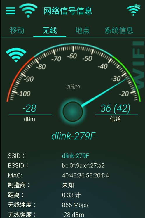 接著,在客廳把第二台COVR-1100 MESH起來之後,手機測試到的WiFi訊號又恢復成-28dB!