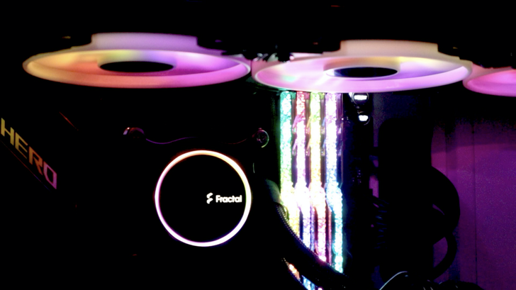 而壓制 10900K 這隻猛獸的工作,就交給 Fractal Celsius+ S36 Prisma。S36 水冷不但擁有強硬的解熱能力,炫砲的 RGB 風扇也是一大亮點。