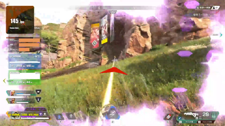 而 Apex Legend 整體的效能測試中平均幀數來到了 143 幀,CPU占用率則在 25 % 左右,偶爾超過 30%,看來對這對 CPU 來說完全不是壓力。