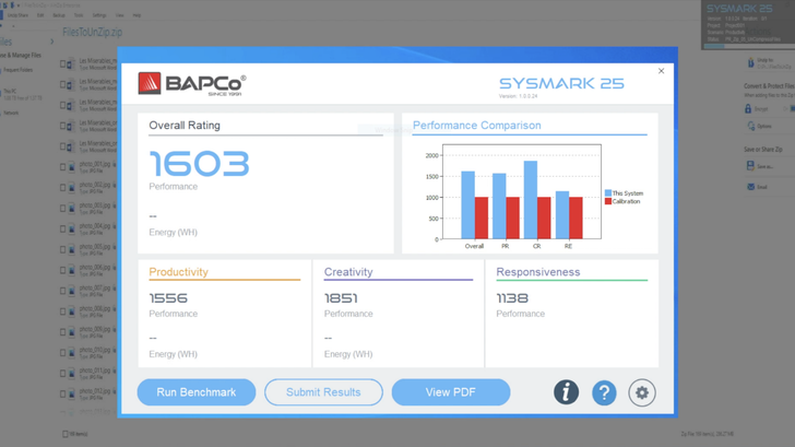 SYSmark 是一款付費的綜合應用跑分軟體,例如 Office、Adobe、Chrome、解壓縮、影片編輯等功能都會進行實際測試。在 CPU 預設而記憶體使用 XMP 超頻至 3600MHz 時,這個部分測得了 1603 分,基本上就代表著它可以完美勝任日常所有的工作需求。