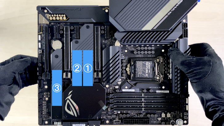 原本主機板上一共有三組 M.2 插槽,但是散熱片太寬,其中兩個安裝時都會卡到旁邊。這並不是主板或是 SSD 的錯,是因為主板板來就有自帶散熱片,本來就是設計給沒帶散熱片的 SSD 裝的,所以會卡到並不意外。