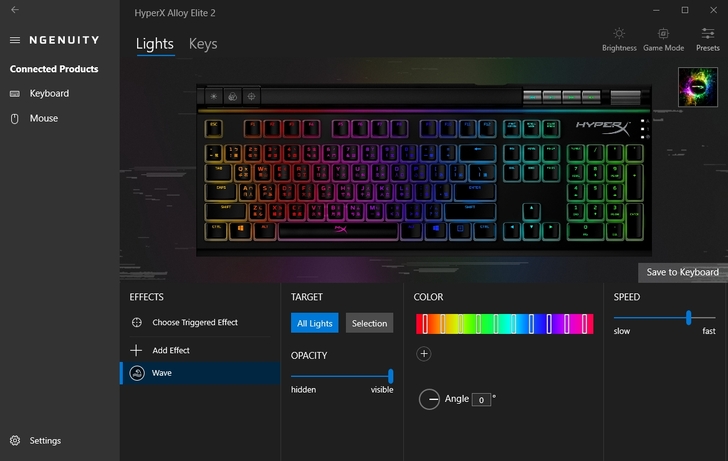 預設的燈光就蠻好看的了 因為PBT雙色布丁帽 真的蠻漂亮的