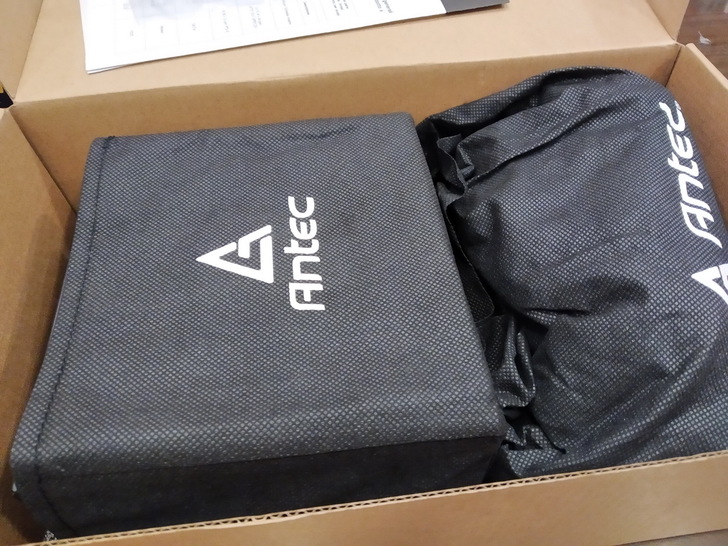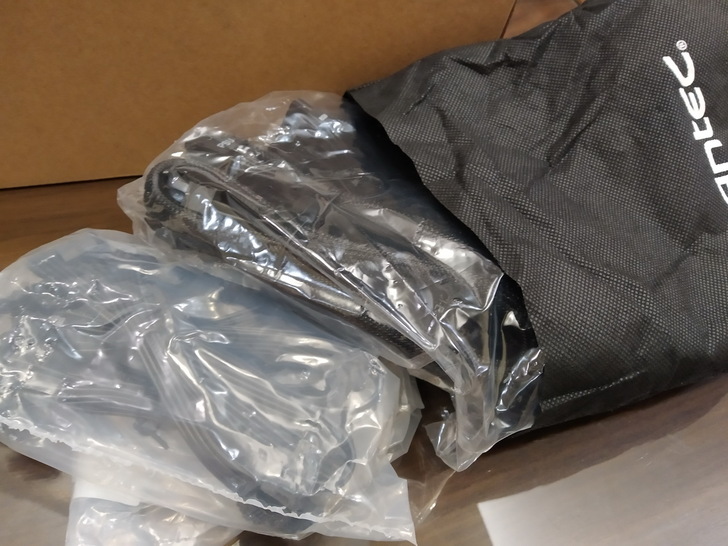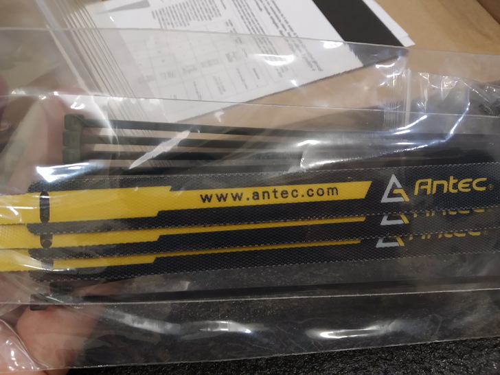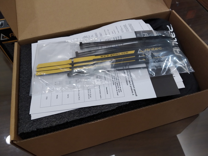一打開就看到附的配件、有打上ANTEC質感非常好的魔鬼氈和束線帶