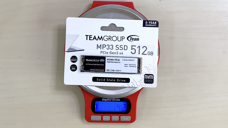 MP33 PCIe Gen3 x4 512GB 重量約 6.2g。而寫入壽命,官網數據標示 512GB 這款在 400TBW。