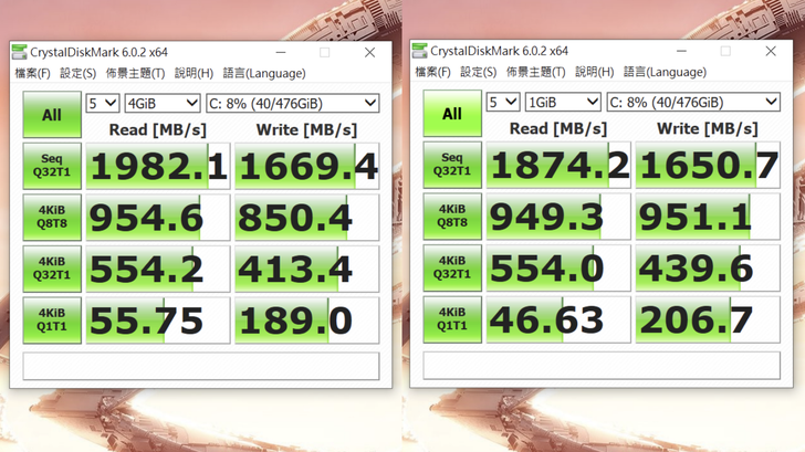 實測讀取居然接近到 2,000MB/s,寫入則在 1600~1700MB/s 之間,不管是讀寫都比標示多了 10% 以上,可以感受到十銓在速度標示上比較保守,沒有常見的灌水情況,這讓我實際買了幾款以後,看到跑分都會覺得很爽。