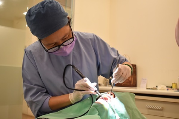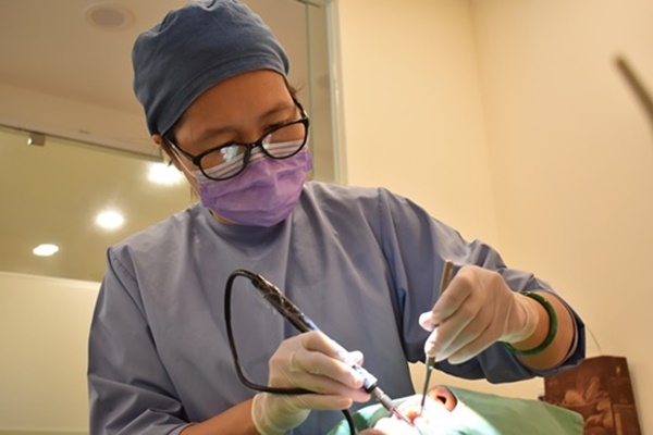 終於輪到寶貝了,我挽著她的小手進入診療室但她另一隻手卻還是拎著剛剛還沒看完的故事書,實在令我哭笑不得。突然一陣尿意襲來,我再次叮囑寶貝要乖乖聽醫師的話,我便匆忙走出診間。再次回來診間已發現寶貝手上的故事書已在護士小姐手上,我也不曉得到底新銳牙醫的護士施了什麼樣的魔法,寶貝竟乖乖躺在診療椅上,醫師正在幫她洗牙,並檢查她的牙齒狀況,我向醫師詢問了:到底什麼是隱適美矯正?