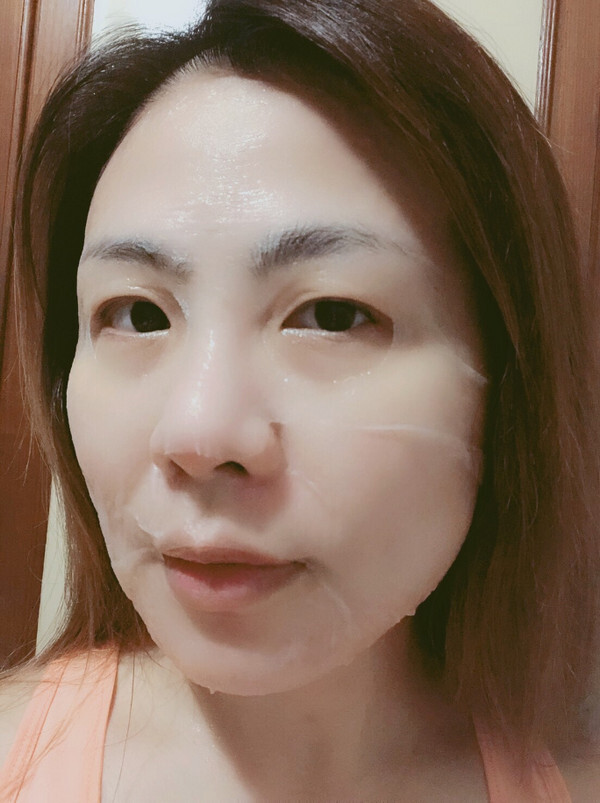 最主要那層是羽絲絨材質,敷起來很貼合臉部肌膚,就連鼻翼也都有敷到!它是屬於比較溫和,沒有很重的香料味道,我還蠻喜歡的,敷完之後只要輕拍臉上的精華液就可以了,不用再洗掉!