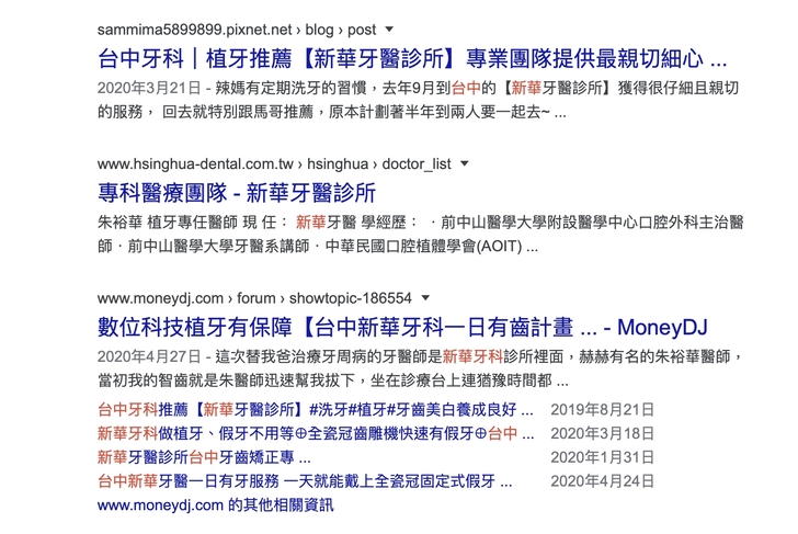 網路上有許多台中植牙、植牙專科醫師,但我始終沒找到喜歡的,有些距離太遠,有些看起來環境不是那麼理想、有些爭議還很多…而我在台中牙醫搜尋頁面上,來回觀察幾家之後,最終決定在新華牙醫,也非常幸運一開始就遇到林義城醫師。