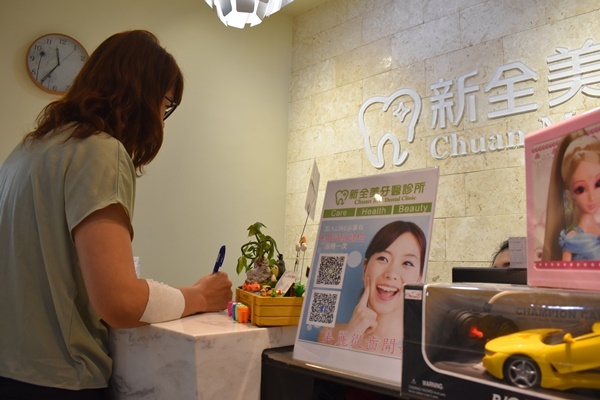 到了預約植牙的那一天,我特地早起驅車北上來到了台中大雅新全美牙醫診所,一進到牙醫診所,迎接我的是笑容可掬的小護士,我向他表示我是今天向朱裕華醫師預約的患者,小護士表示要我先稍等,目前朱裕華醫師正在為患者植牙。