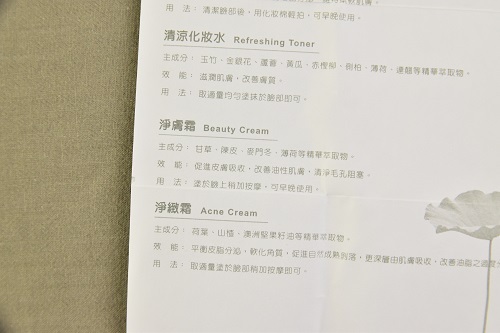 裡面也有再附一張產品的成分跟用法一覽
