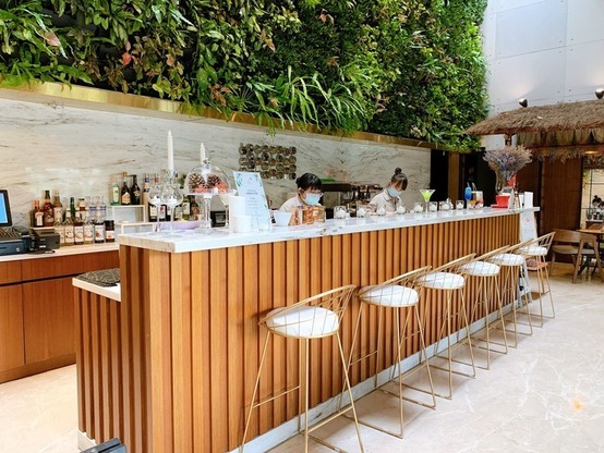 跟大家分享台中cp值很高的環境優美餐酒館,就是在台中火車站附近隱藏在愛麗絲國際大飯店裡的愛麗絲餐酒館,照片中是酒吧,天花板是玻璃高挑的,光線很足~